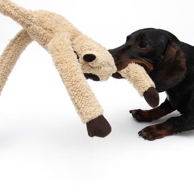 You just have to love this little monkey king! The King Louiiie dog toy with its cute, fun design and long, dangling arms and legs is a welcome playmate for your dog that provides varied fun and entertainment.The cuddly toy is perfect for loving and snuggling thanks to its soft plush exterior, which is also sturdy and can also withstand a lot. Inside, there is a tightly knotted, durable cotton rope, which is why King Louiiie can also be used wonderfully for tugging games and chewing. A squeaker in the head also encourages play. The cuddly monkey for dogs has no small parts that can be swallowed and little filling wool: The friendly face is embroidered on, ensuring carefree fun and games.